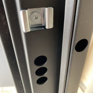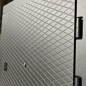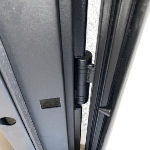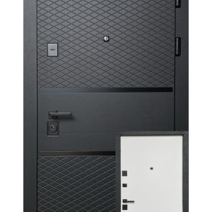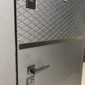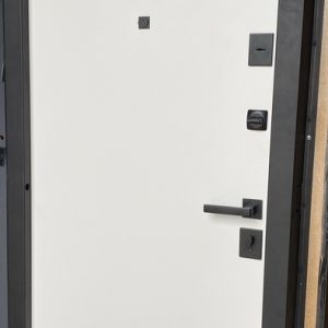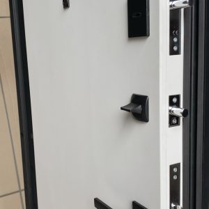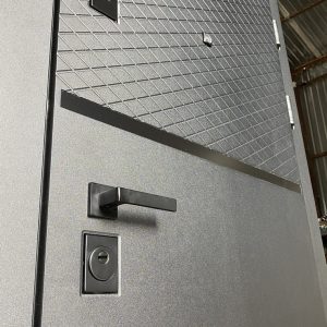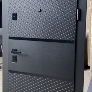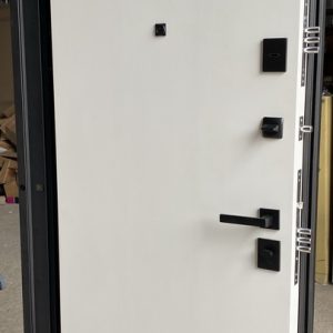 Фурнітура* | 3 петлі, ручка на розетті, нічний засув, ексцентрик, поріг з нерж. сталі, торець полотна зашитий МДФ, Чорна квадратна фурнітура |