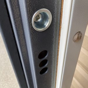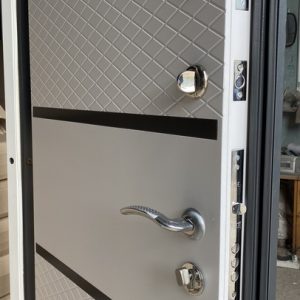 Фурнітура* | 3 петлі, ручка на розетті, нічний засув, ексцентрик, утоплена броненакладка, поріг з нерж. сталі, торець полотна зашитий МДФ, рама 2 кольори + терморозрив (коркове дерево) |
