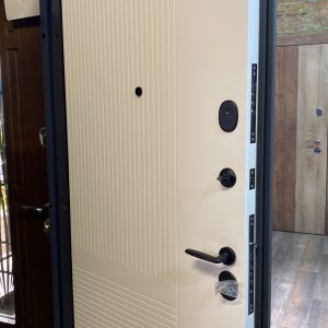 Фурнітура* | 3 петлі, ручка на розетті, нічний засув, ексцентрик, утоплена броненакладка, поріг з нерж. сталі, торець полотна зашитий МДФ, чорна фурнітура. |