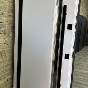 Фурнітура* | 3 зовнішні петлі, антизрізи, чорна фурнітура, ручка труба чорна, утоплена броненакладка, терморозрив на рамі (пробка 4 мм), ексцентрик, поріг з нержавіючої сталі |